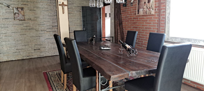 Il nostro soggiorno è pieno di luce naturale, mobili rustici in legno e materiali naturali.